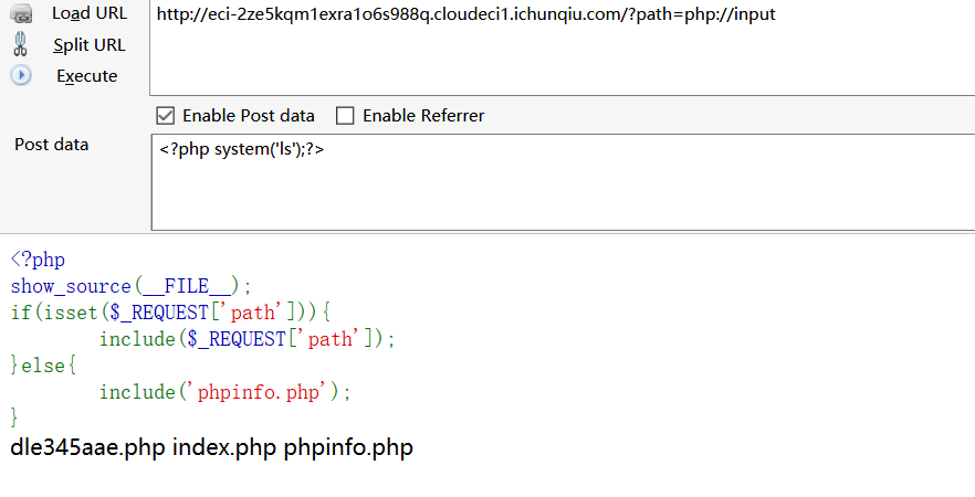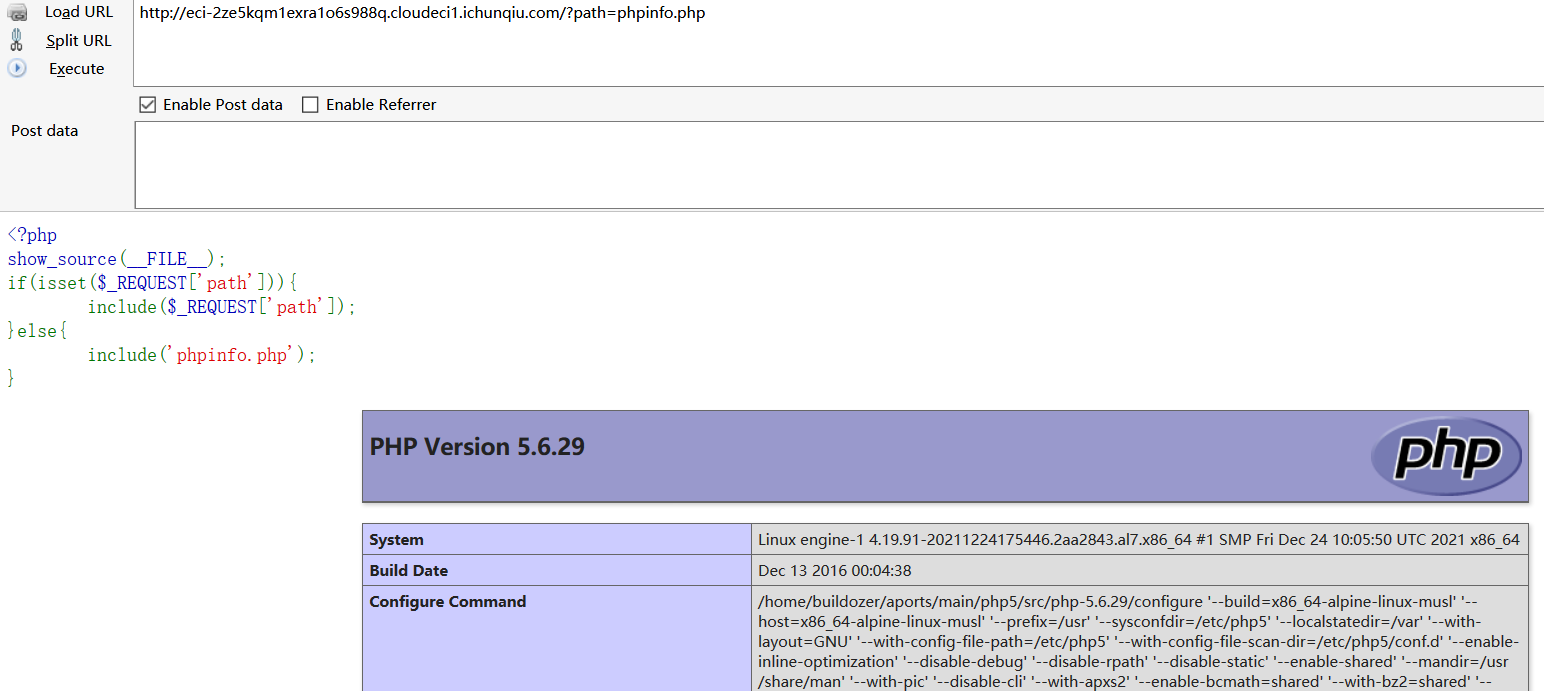 无论直接访问还是利用参数访问,都执行了页面代码。也可根据页面代码发现存在文件包含漏洞