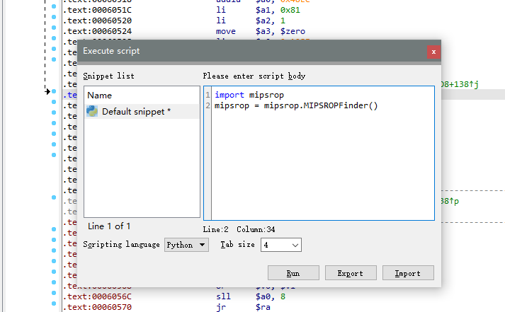 对于mips下rop链的构造,经常使用到的是move $a0 $s0 。 我们可以使用一个ida工具mipsrop来寻找
