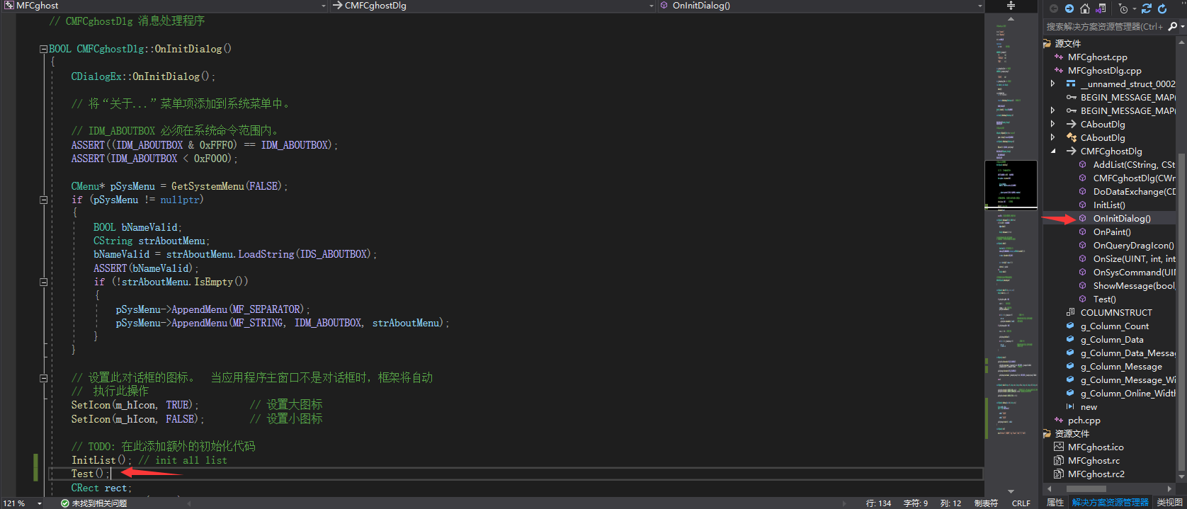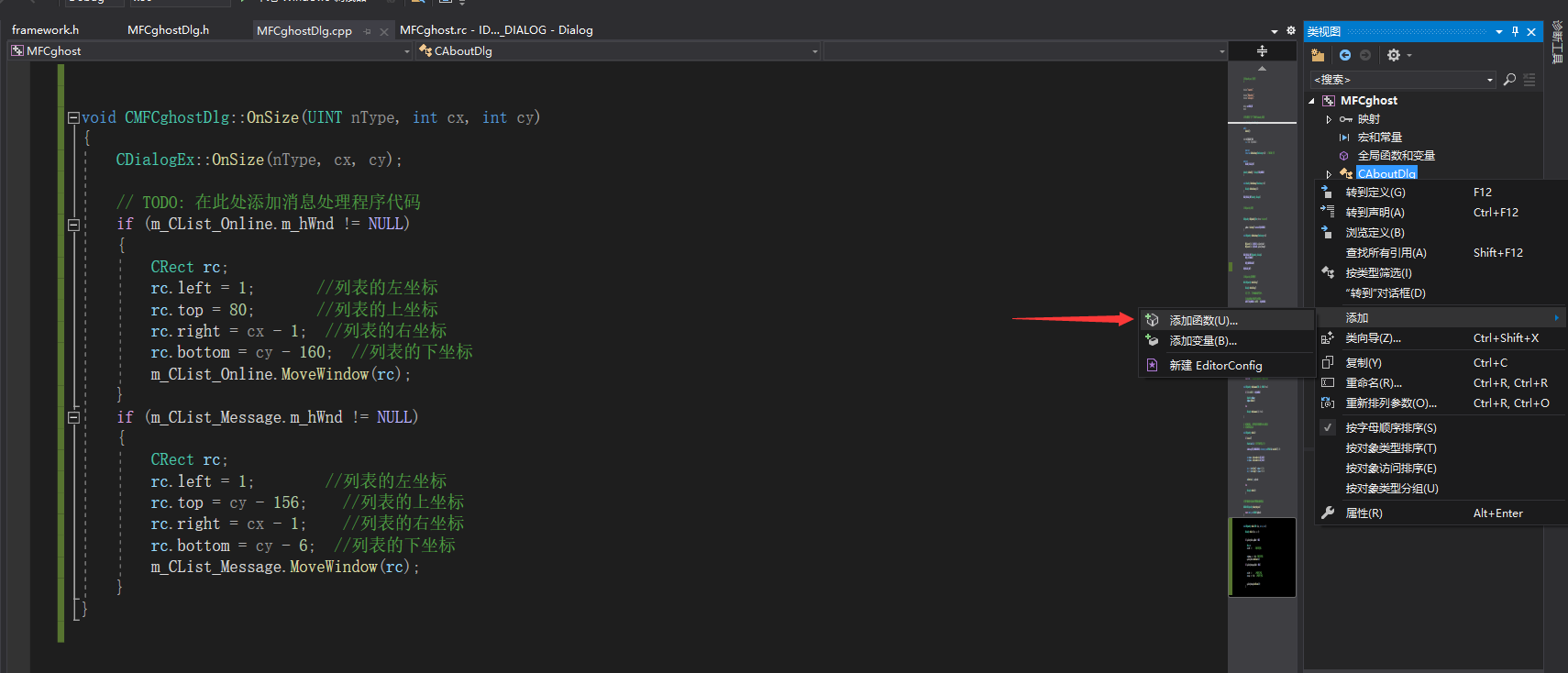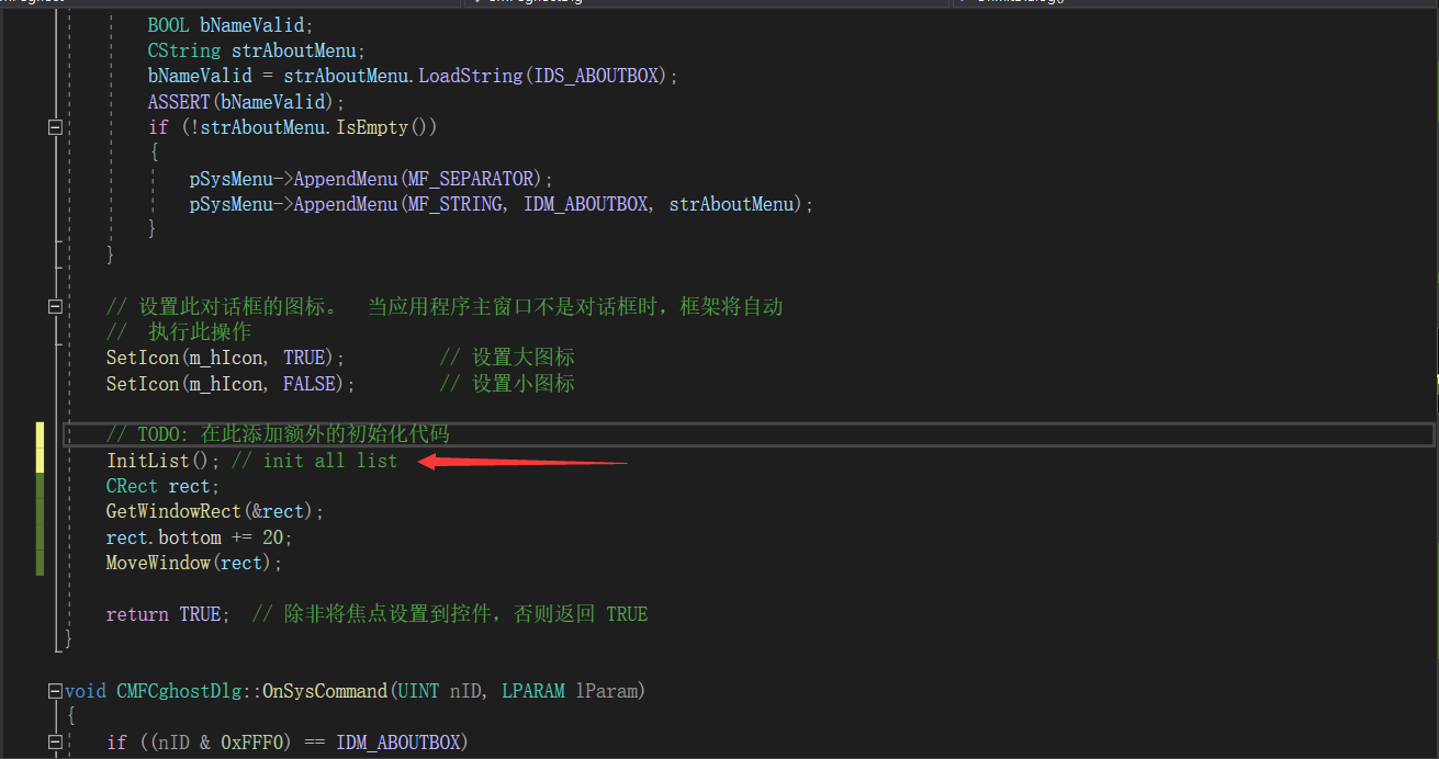 虽然列表可以直接写在OnInitDialog,但直接在这里初始化太过臃肿,所以可以添加成员函数