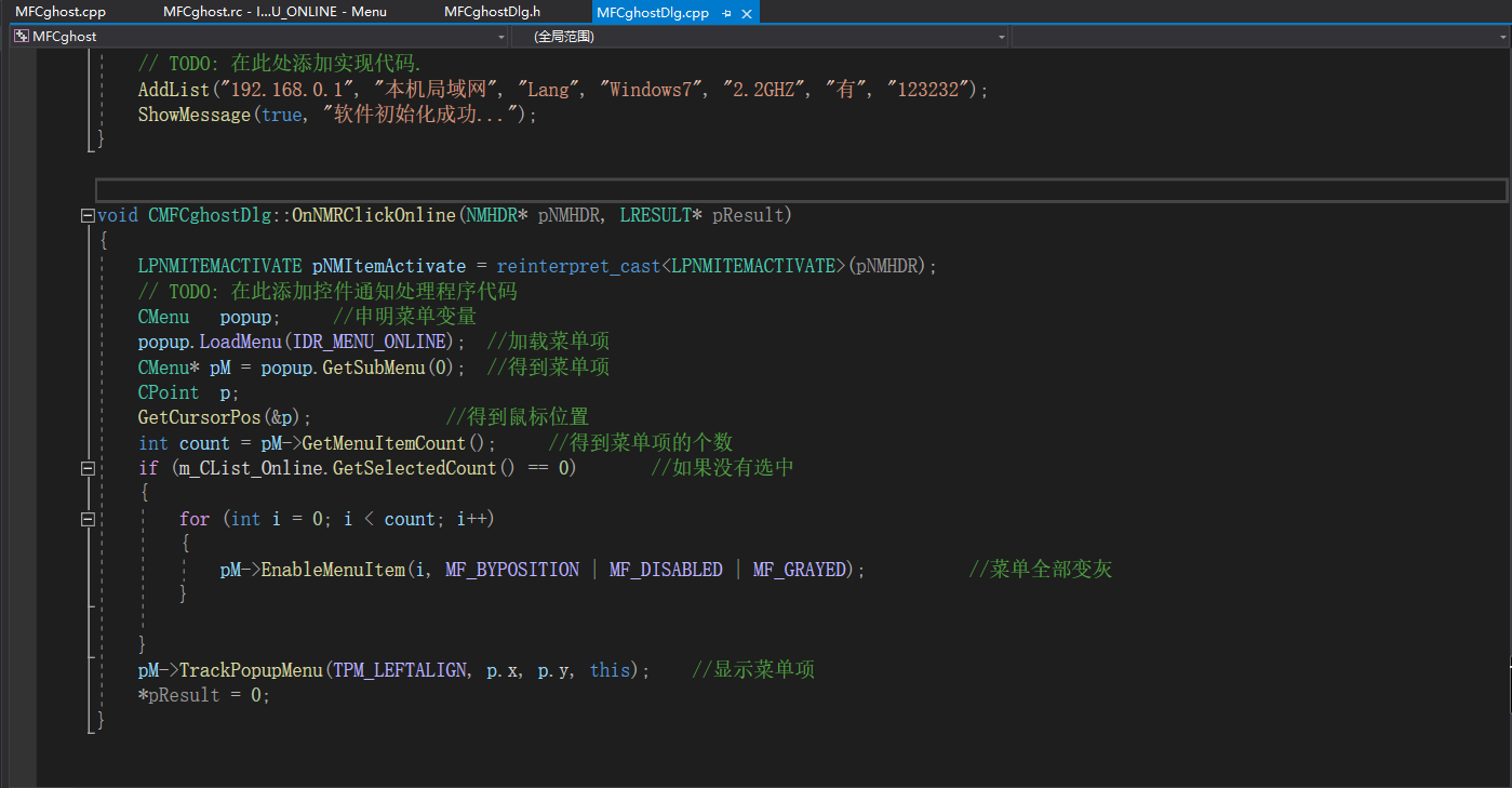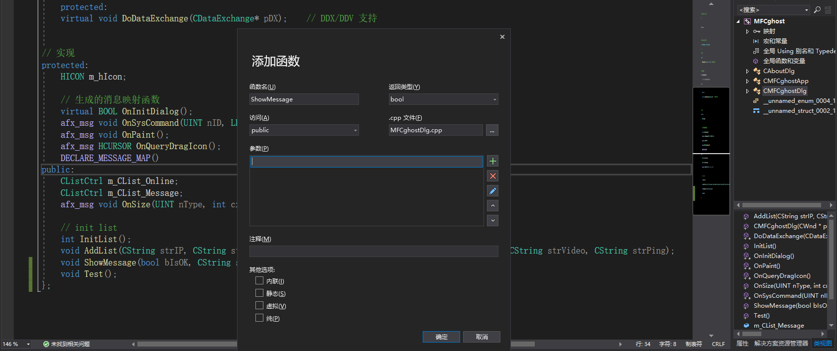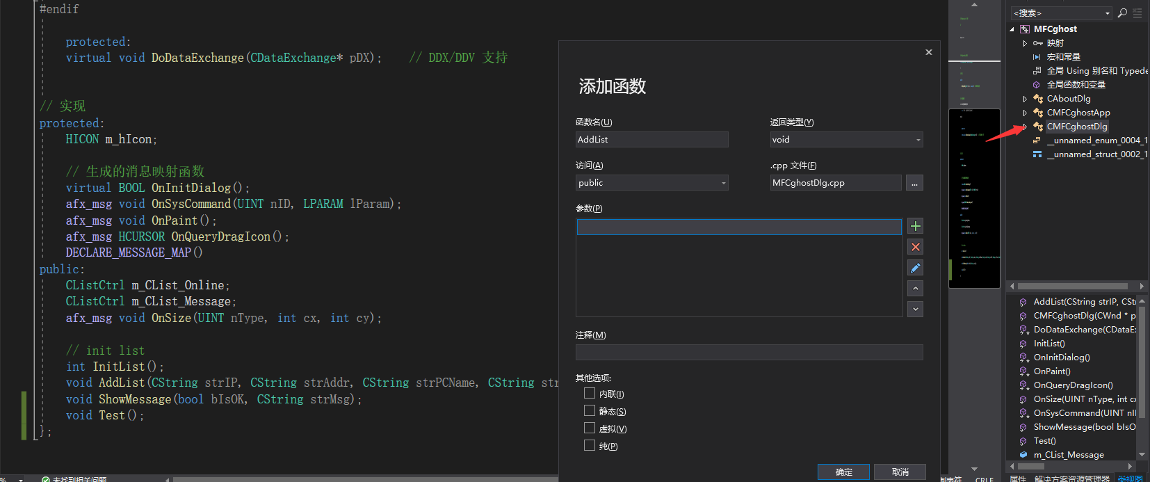 虽然列表可以直接写在OnInitDialog,但直接在这里初始化太过臃肿,所以可以添加成员函数