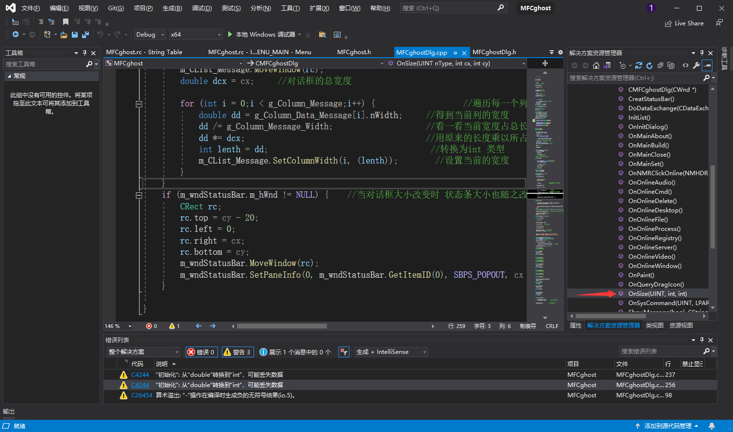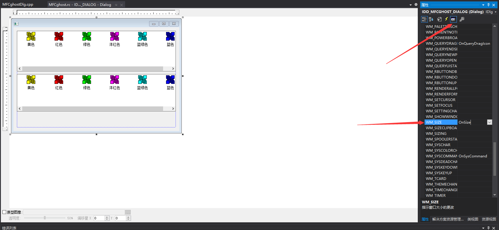 7.相应对话框改变大小的消息WM_SIZE就是 向对话框抛出这个消息对话框就会改变大小,我们先相应这个消息,然后再把这个消息