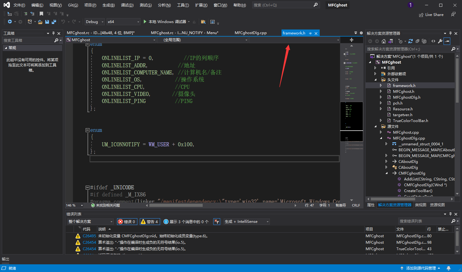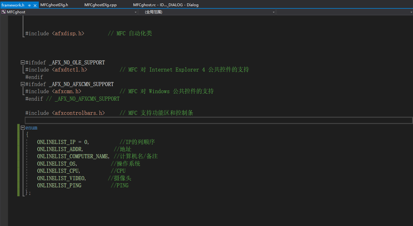 4.需要一个列表记录表格中的字符,因为这个列表比较重要所以要放到一个每一个文件都能访问到的文件,我这里选择了framework.h