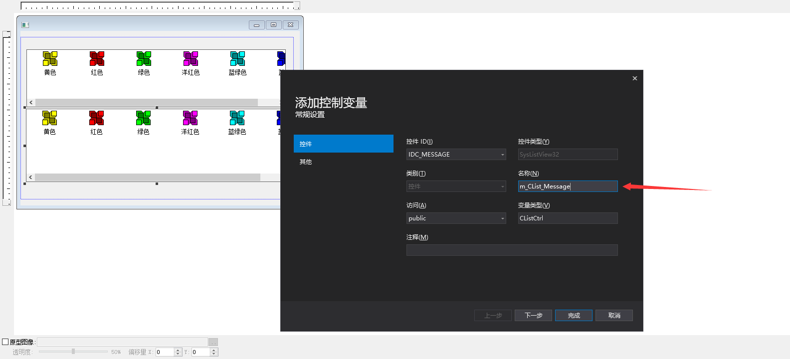 2.上一节我们为列表控件添加变量,我们来查看变量的类型: