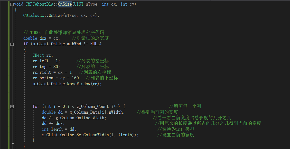 m_CList_Online.SetColumnWidth(i,(lenth)); //设置当前的宽度
