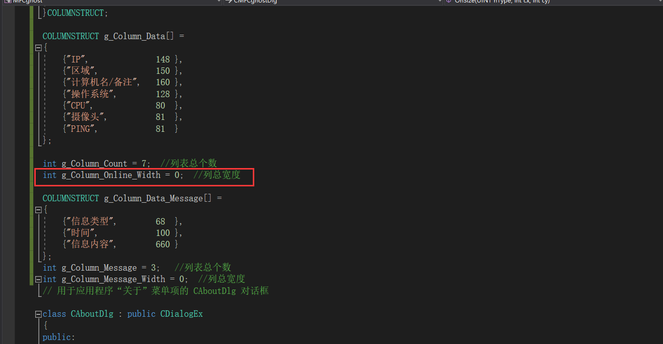 (1)int g_Column_Message_Width = 0; //列总宽度