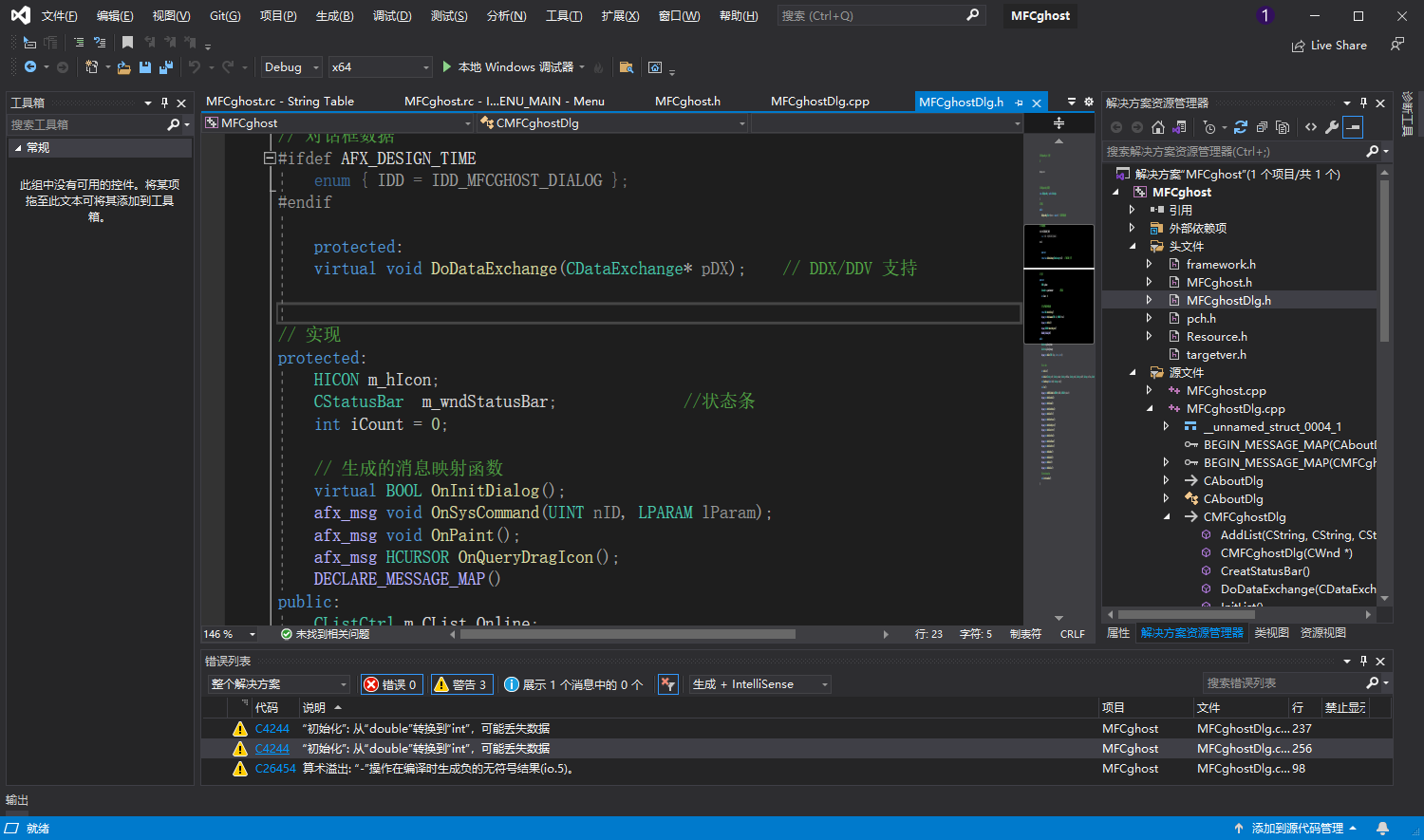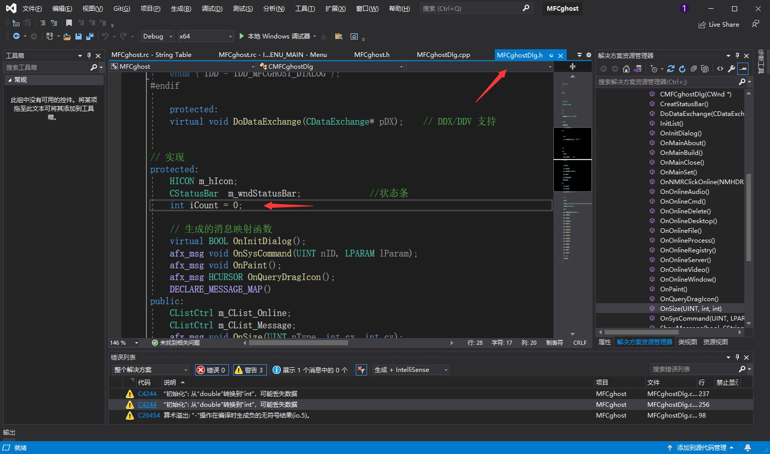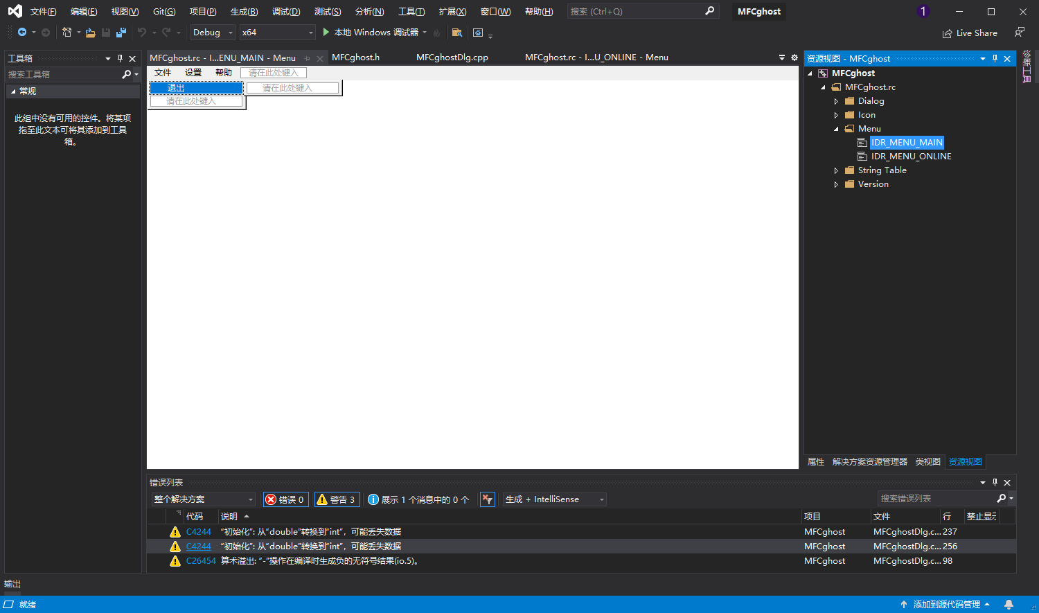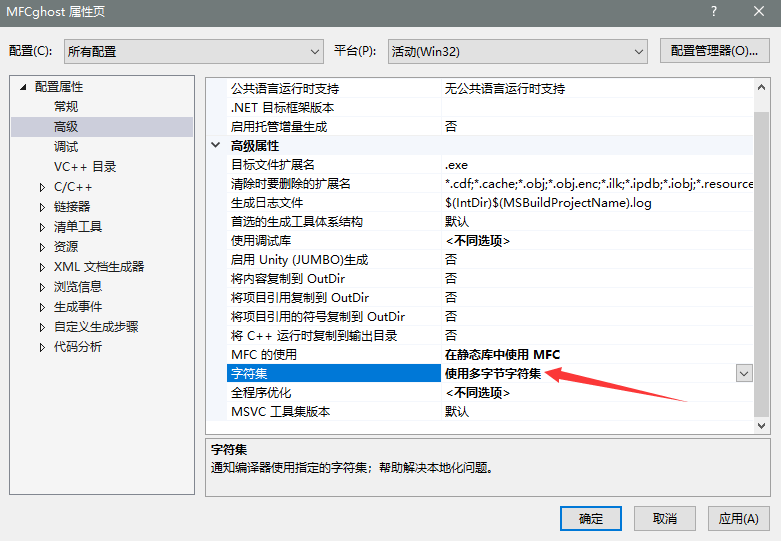 我这里会报错,是因为使用了uncode字符集,需要修改为使用多字节字符集