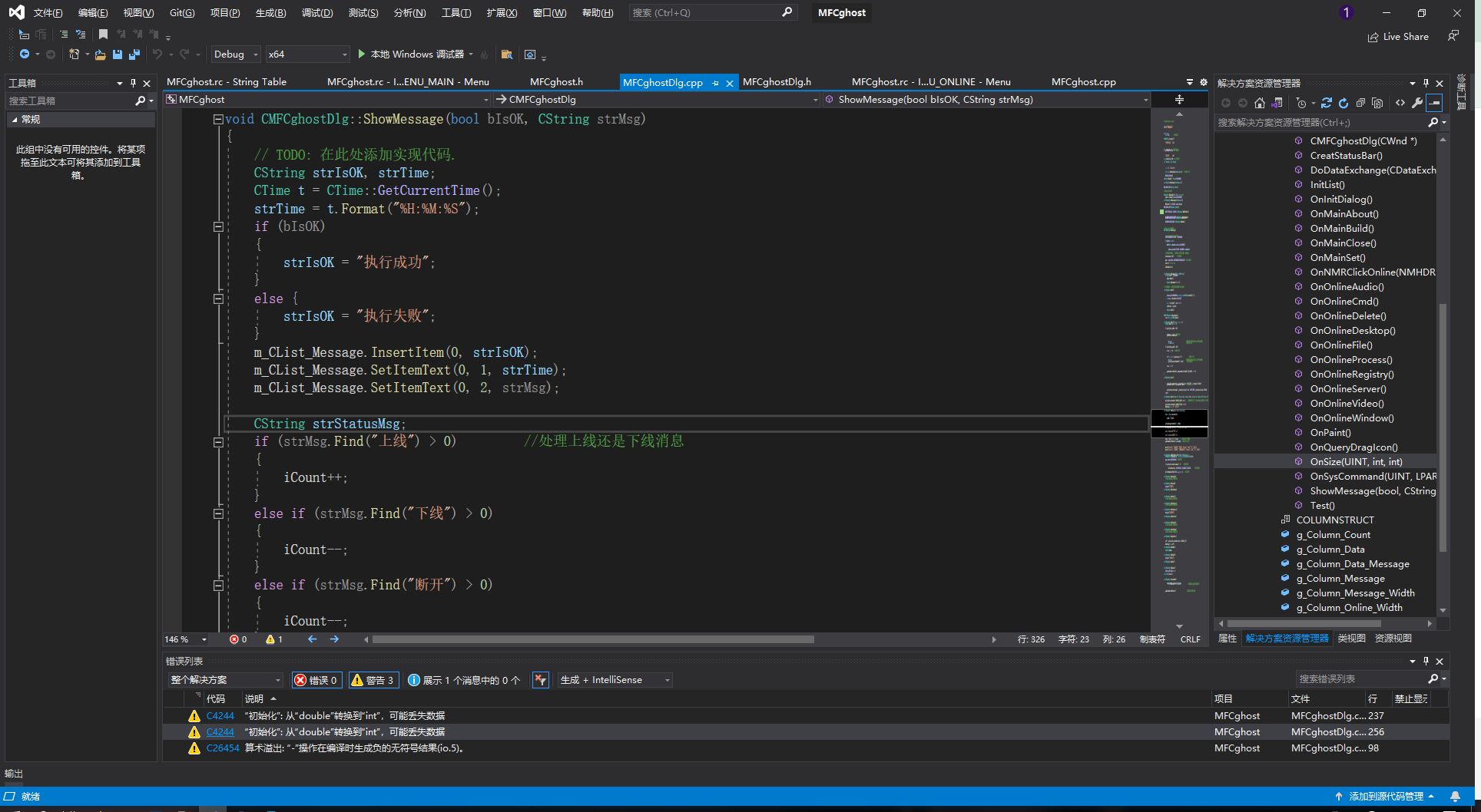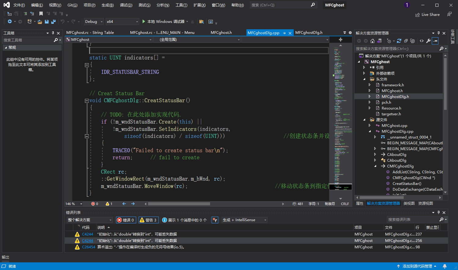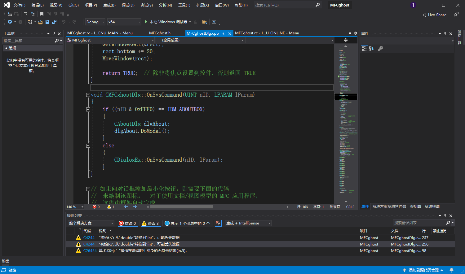 我这里会报错,是因为使用了uncode字符集,需要修改为使用多字节字符集