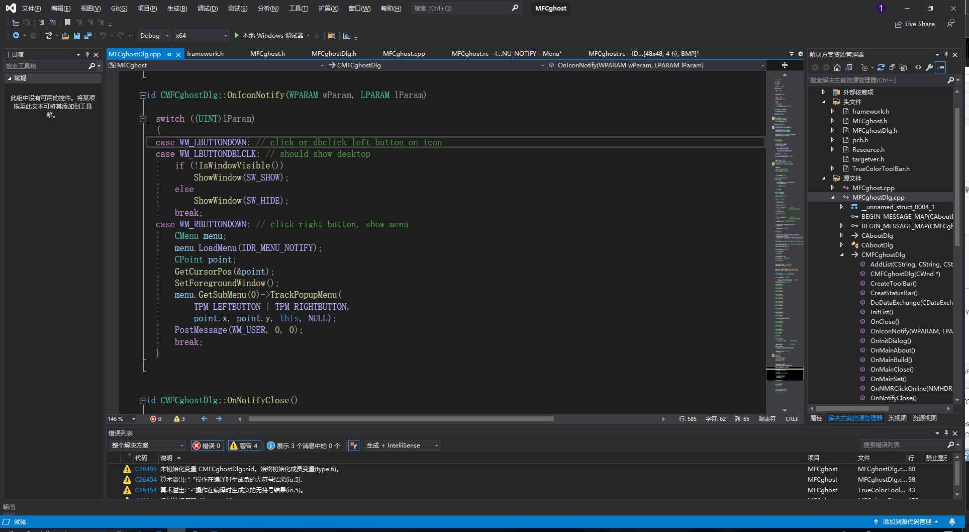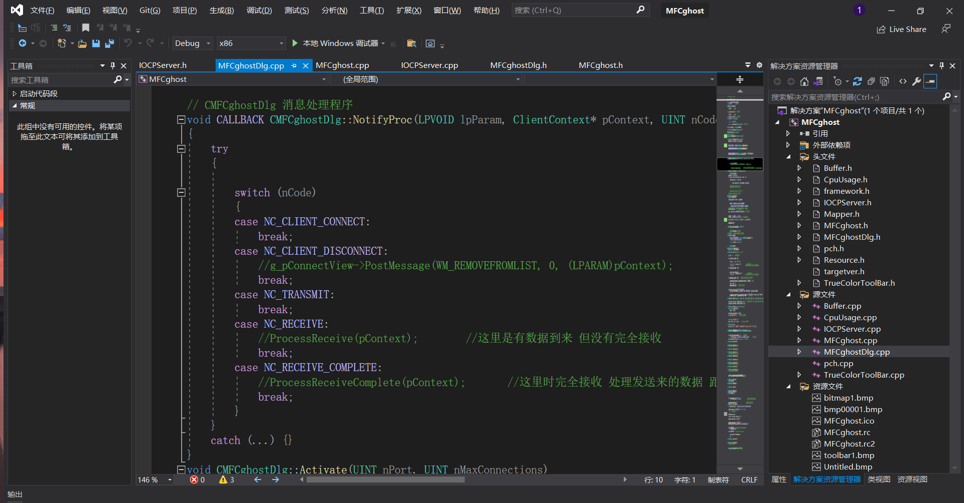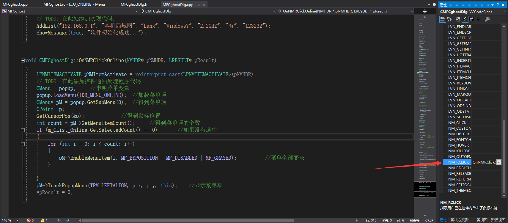 void CALLBACK CMFCghostDlg::NotifyProc(LPVOID lpParam, ClientContext* pContext, UINT nCode)