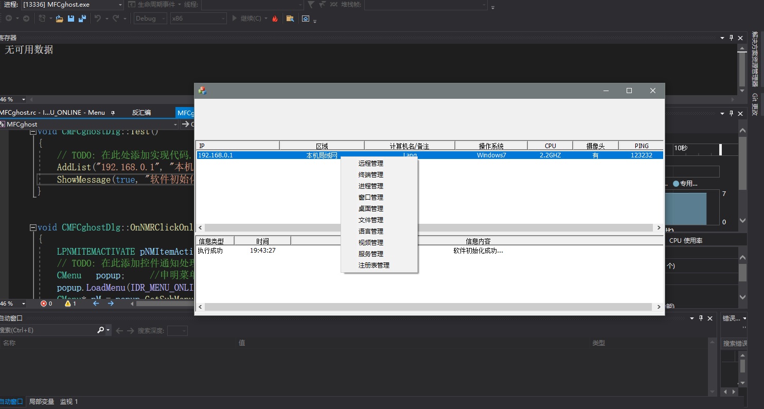 0IP 1所在区域 2计算机名/备注 3操作系统 4CPU 5摄像头 6Ping