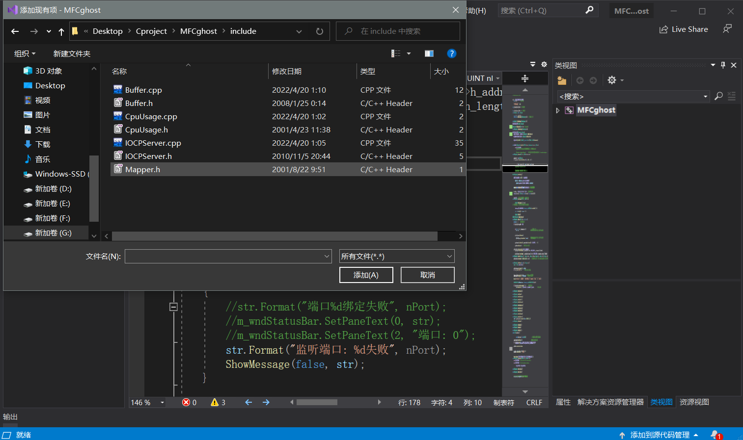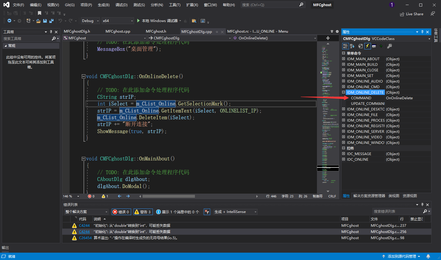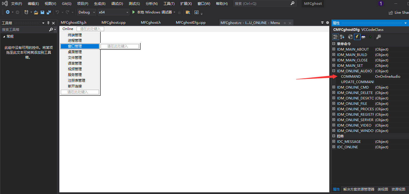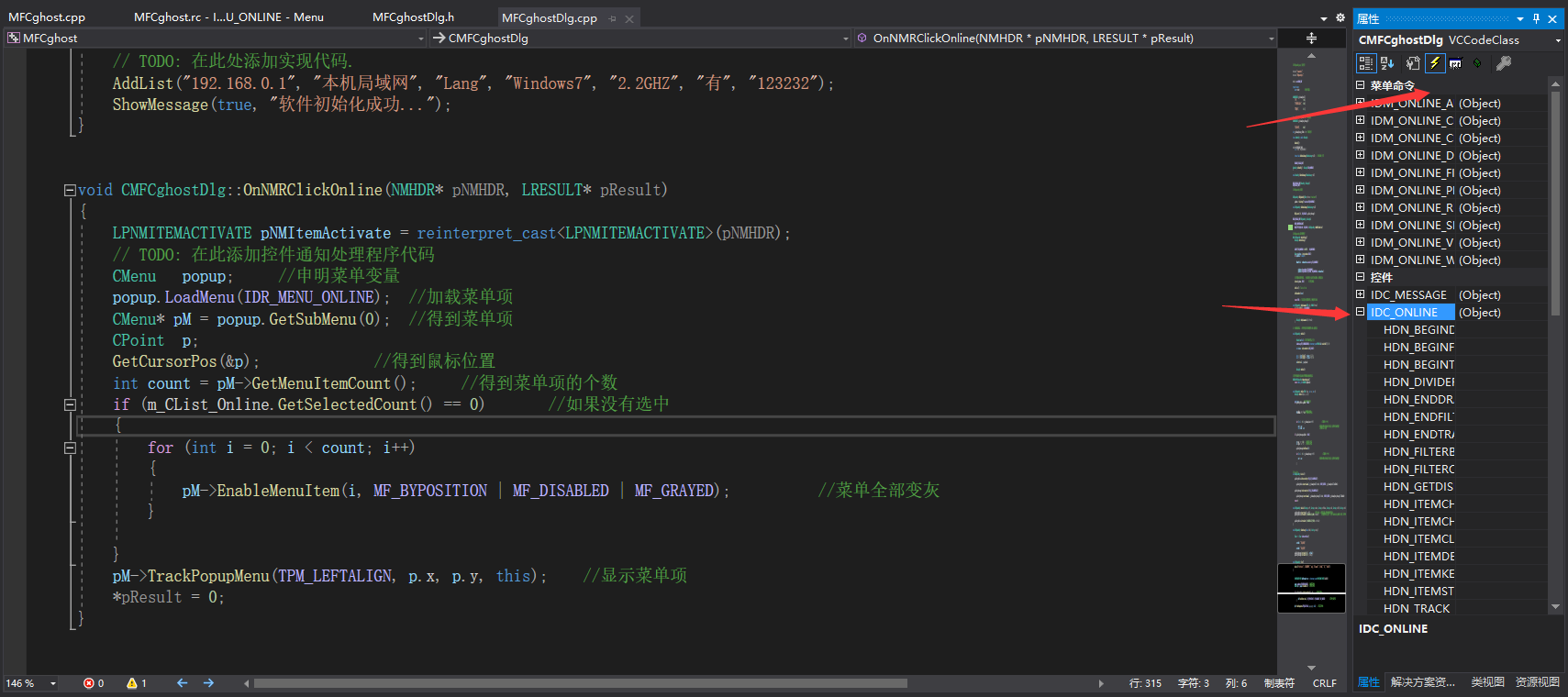 4.添加服务端连接后显示的列表控件IDC_ONLINE,日志列表控件IDC_MESSAGE