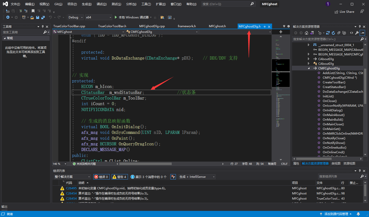 6.添加列表控件变量m_CList_Online,m_CList_Message