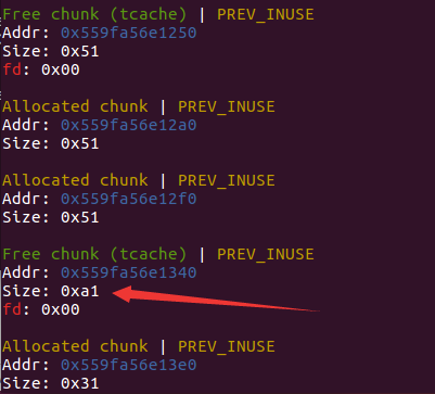因为chunk(8)的大小为0x78,为了溢出至chunk(9),我们需要malloc一个大chunk,从而可以修改到chunk(9)的FD