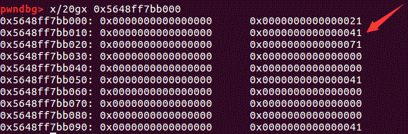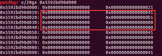 new(0x60,1,p64(0)*5 + p64(0x41))