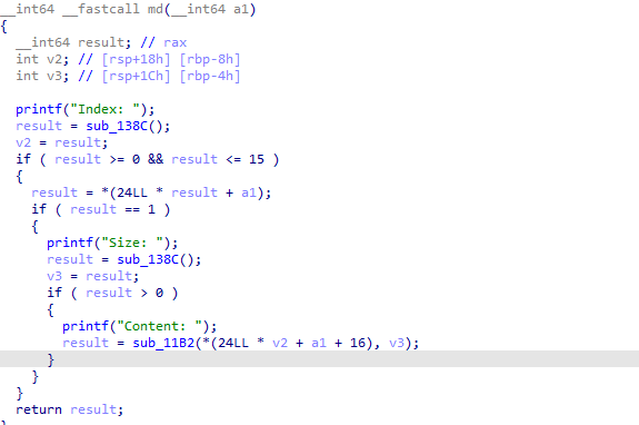 漏洞点在md函数,这里没有限制size长度,所以存在溢出漏洞